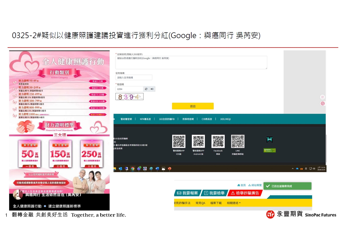 0325-2#疑似以健康照護建議投資進行獲利分紅(Google:與癌同行 吳芮安)